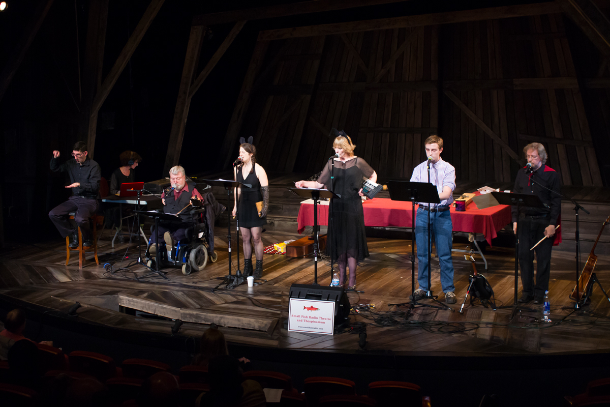 The Small Fish Fringe Ensemble from L. to R. Mike Herzovi, Cat Dean, Lisa Scott, Joy Thorbjornsen-Coates, Janna Sobel, Michael John Kelly